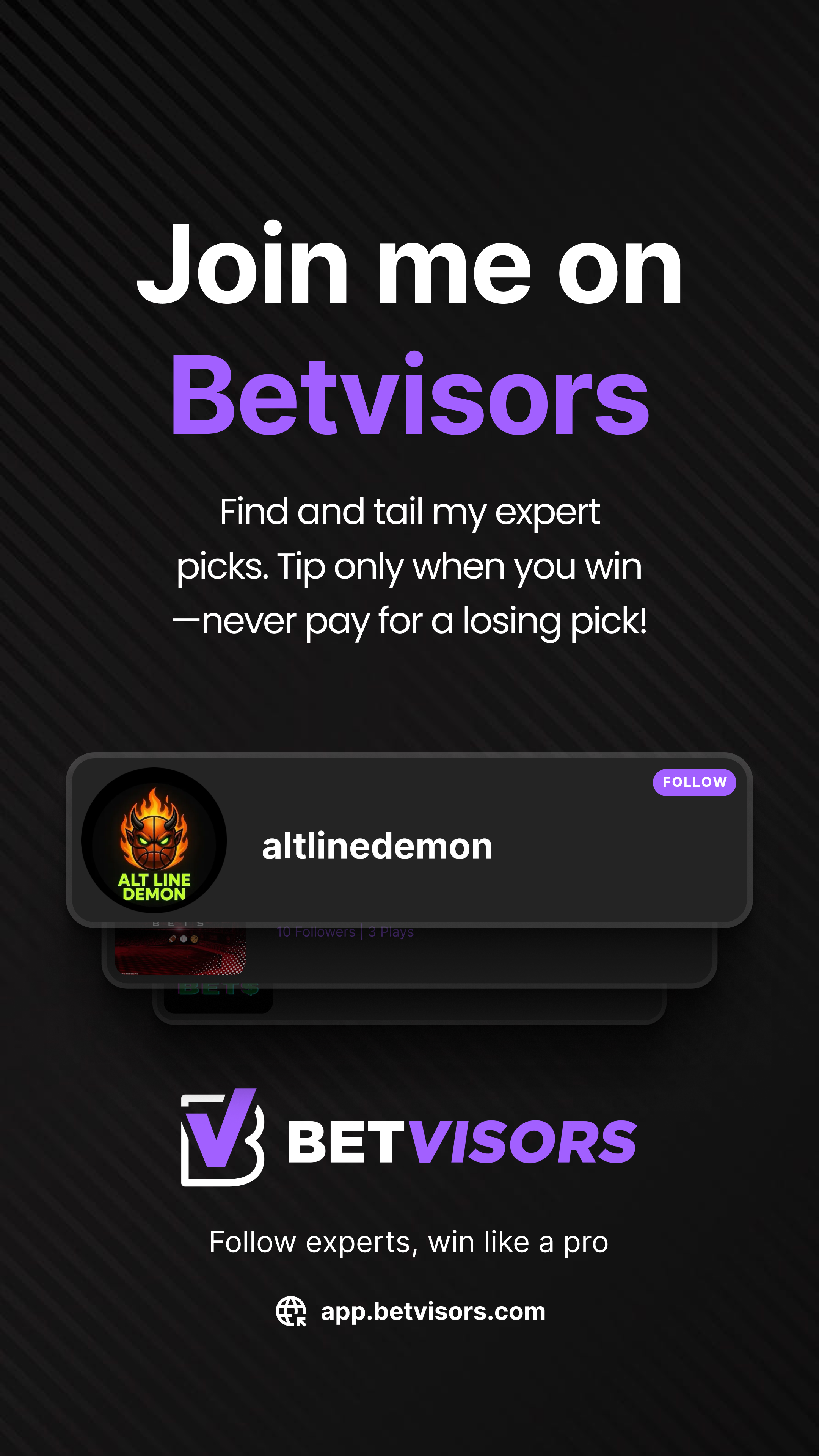 Join Betvisors as an advisor. Post your picks, earn tips only when they win, and get your own branded marketing kit — free.